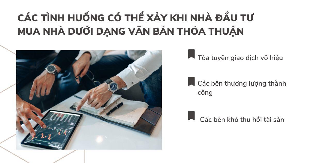 2. Các tình huống có thể xảy khi nhà đầu tư mua nhà dưới dạng văn bản thỏa thuận